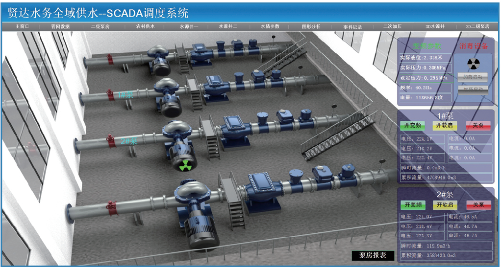◆ 系統(tǒng)可以實(shí)時監(jiān)測進(jìn)廠流量、出廠流量、出廠壓力、水池水位、余氯等信息。